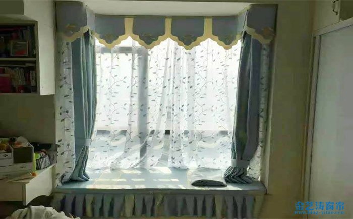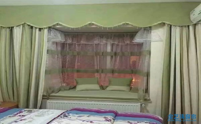 1、飄窗的窗簾,一般情況下都是窗簾做在飄窗里面,布簾做在飄窗外面雅口的地方。飄窗窗簾,在飄窗里面靠著窗戶玻璃繞一圈,有U字形的,也有L型的,高度同飄窗內(nèi)高。臥室的布簾一般做通墻落地的比較多,如果有暖氣片的,也可以做窗框大小,兩遍個(gè)延長30公分左右。另外,還有直接把布簾和配套的紗簾一起做在飄窗里面,這樣既省布料,又顯得臥室很大,不繁瑣。