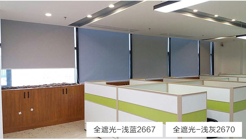 雙面同色環(huán)保遮光卷簾,面料隔熱遮陽,防紫外線,無異味,工程專用款