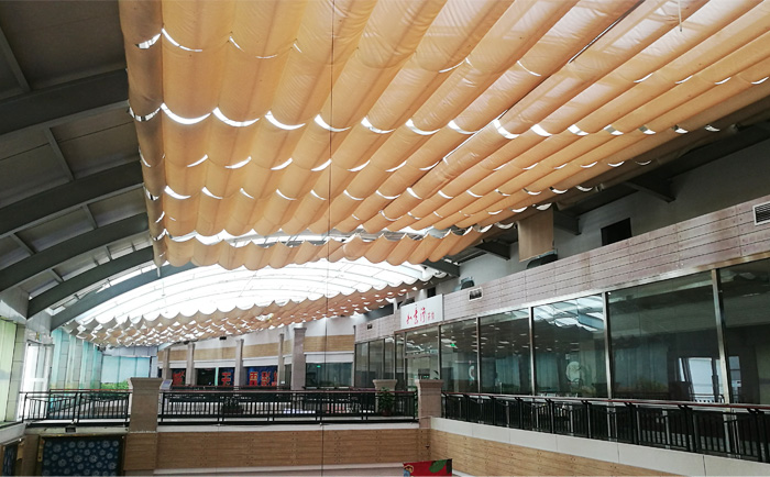 FCS天棚簾應用場所:中大型的遮陽場所,如商務中心、百貨大樓、體育館等公共場所。