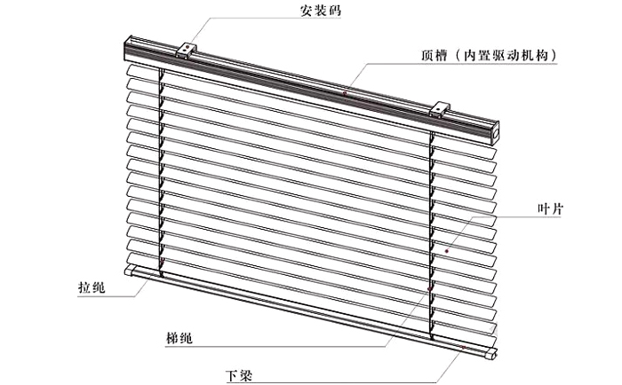 電動百葉簾(橫向)的驅動系統由一個電機、卷繩器及一個機械式限位器組成,這些組件均安裝在“C”型不銹鋼托架內,最終與簾片組裝成一套電動百葉簾最終產品。組裝好的百葉簾系統將按設計要求安裝于雙層玻璃幕墻或吊頂內。系統的控制方式可采用普通線控開關控制、無線遙控控制、定時控制、風雨光控制以及樓宇集成控制等,也可以兼容并接入其他的系統,比如somfy系統。